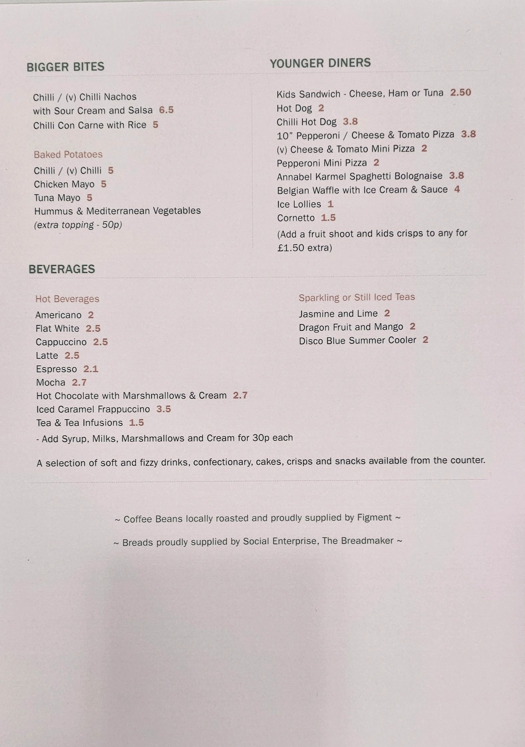 UNITY CAFE MENU